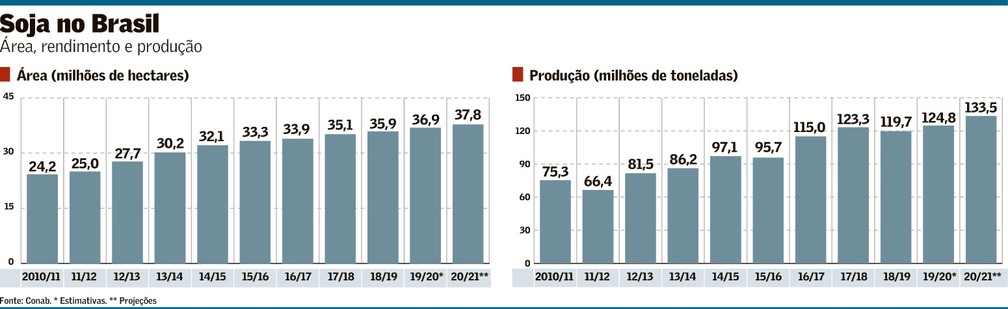 É cedo, porém, para afirmar que a intempérie vai tirar a futura colheita, que tende a ganhar força em janeiro, do caminho de um novo recorde. Conforme a primeira estimativa da Companhia Nacional de Abastecimento (Conab) para esta temporada 2020/21, a área plantada no país deverá crescer 2,4% ante 2019/20 e a produção aumentará 7%, para 133,5 milhões de toneladas. Consultoria privadas também projetam avanço, bem como o Departamento de Agricultura dos EUA (USDA).